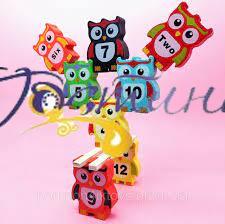 Дерев'яна іграшка Wooden Toys, фігурки (сова + цифри), 12шт, в коробці 19-14,5-4см, MD0954