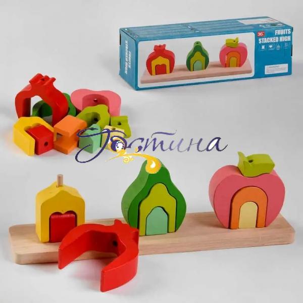 Дерев'яна Логіка С 48169 (40) пірамідка "Фрукти", 10 елементів, в коробці
