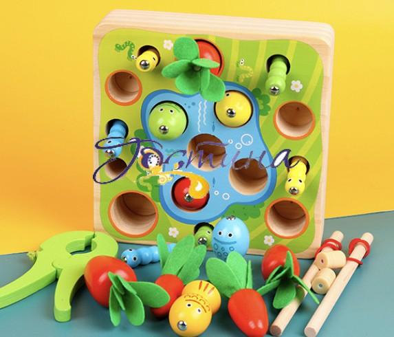 За допомогою 2 вудок, можна ловити різнокольорових черв'ячок і рибок.