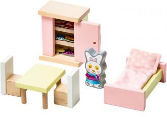 Дерев'яна розвивальна гра Cubika Дитячий набір Меблі 2 Спальня містить магнітну фігурку (висота 8 см), ліжко з подушкою і укривалом, шафа і 8 комплектів магнітного одягу, стіл і 2 стільці.