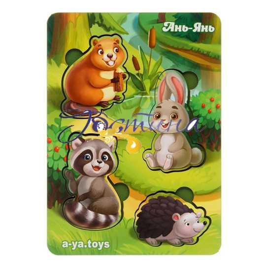Дерев'яні вкладачі (рамка-вкладач) "Лісові тварини – 1" (фон із підказкою) ПСФ057