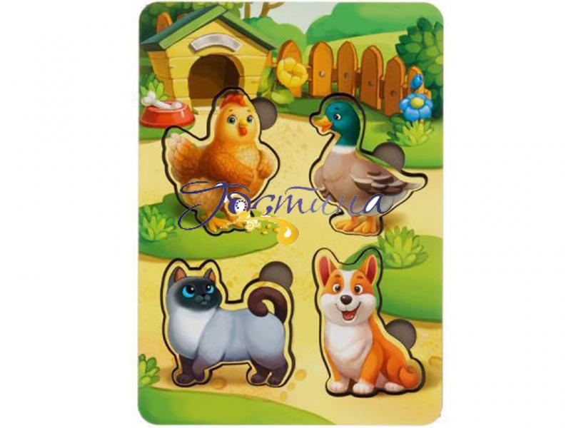 Дерев'яні вкладачі (рамка-вкладка) "Домашні тварини – 2" (фон із підказкою) ПСФ054