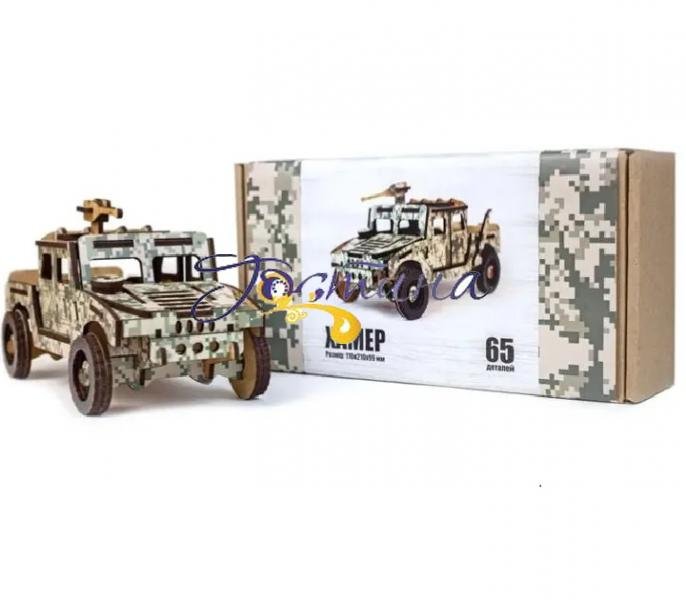 Дерев'яний "Хамер" - це конструктор із серії автомобілів, який буде особливо цікавий для любителів авто чи дітям, які просто захоплюються модельками машинок. Усі елементи виготовлені із високоякісної деревини. Складання проводиться без клею та інших хімкомпонентів. В результаті дитина отримує корисну навичку ручного складання і якісну модель, що рухається. Ви можете зібрати колекцію техніки – дерев'яних конструкторів. Обережно! Продукція містить найдрібніші деталі. Щоб уникнути небезпеки (ковтання деталей, вдягання в носові чи слухові отвори), рекомендується використовувати під наглядом дорослої особи. Виробник PuzzleOK. Матеріал: ХДФ. Формат: 3D. Тема: машинки. Кількість деталей: 65 частин. Розмір: 110*210*99 мм. Вік: від 6 років.