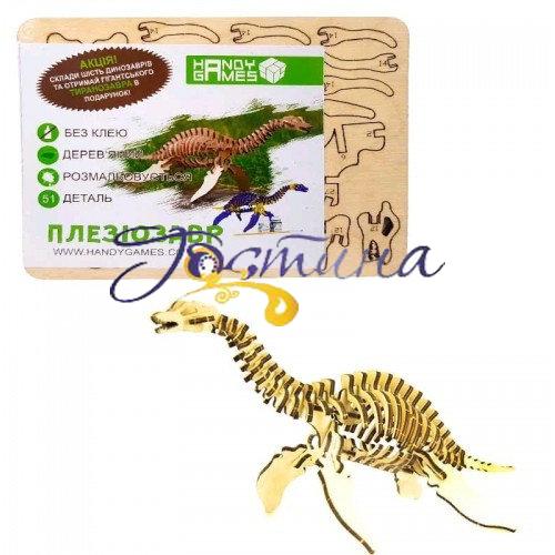 Дерев'яна іграшка Пазл 3D Плезіозавр HG-0033 51дет. розм. 360*140*12мм