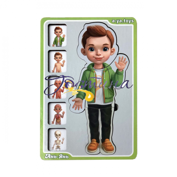 Дерев'яний 5 шаровий сортер-пазл (дерев'яний вкладка) "Анатомія людини – хлопчик" ПСФ026
