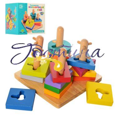 Дерев'яна іграшка Геосортер складається з 16 фігур. Навчить Вашого малюка розпізнавати фігури, кольори. Розвиває моторику і мисленя.