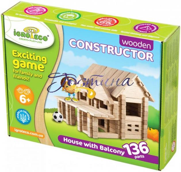 Іграшка "Будиночок з балконом" є натуральною, екологічною, безпечною, не містить шкідливих домішок. Конструктор "Будиночок з балконом" виготовлений з дуба. Деталі ретельно відшліфовані та нічим не покриті.