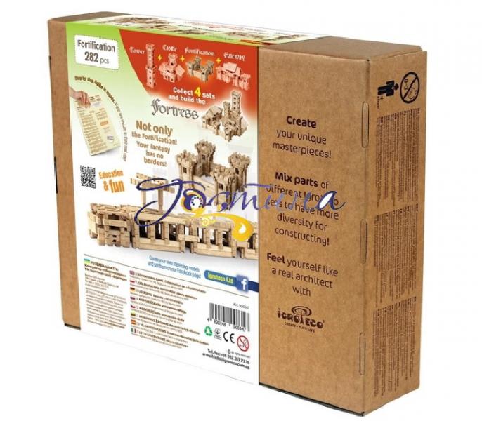 Серія "Фортеця" ("Fortress") ТМ "Ігротеко" складається з 4 наборів – "Вежа", "Оборонні мури", "В'їзна брама" та "Замок", які можна збирати як окремо, так і всі разом - у ціле старовинне місто-фортецю. До наших часів на території України збереглись фортеці, які зачаровують своєю красою та величністю. З ними пов'язані загадкові чи навіть містичні легенди. Щороку їх відвідують мільйони туристів. Найвідоміші з них - Аккерманська фортеця, Камянець-Подільська (належить до Семи чудес України), Хотинська, Кодацька та інші.