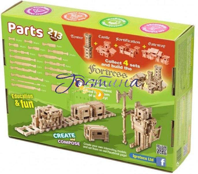 Серія "Фортеця" ("Fortress") ТМ "Ігротеко" складається з 4 наборів – "Вежа", "Оборонні мури", "В'їзна брама" та "Замок", які можна збирати як окремо, так і всі разом - у ціле старовинне місто-фортецю. До наших часів на території України збереглись фортеці, які зачаровують своєю красою та величністю. З ними пов'язані загадкові чи навіть містичні легенди. Щороку їх відвідують мільйони туристів. Найвідоміші з них - Аккерманська фортеця, Камянець-Подільська (належить до Семи чудес України), Хотинська, Кодацька та інші.