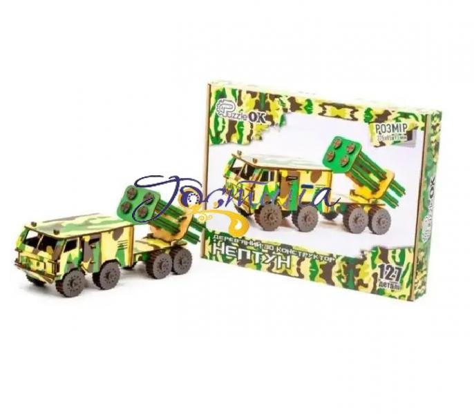 Дерев'яний конструктор Нептун PuzzleOk (00989) має унікальний дизайн, який вам сподобається. З гордістю демонструйте зібрану вами модель військової машини на будь-якій виставці. Поділіться любов'ю та пристрастю до військових та армійських речей з друзями та родиною. Ідеально підходить для дітей та дорослих, які цікавляться наукою, армією та бойовими броньованими машинами. Цей навчальний 3D-пазл "Нептун" допоможе дітям та підліткам дізнатися більше про військову техніку у веселій та розважальній формі, одночасно стимулюючи їх навички. Конструктор для творчості "Нептун" – це об'ємна модель військового транспортного засобу ракетної системи залпового вогню для дорослих та дітей, які люблять використовувати свій мозок та створювати щось своїми руками. Любителям головоломок різного віку та статі сподобається будувати цей дивовижний конструктор із 127 деталей. Розмір дерев'яного конструктора у зібраному стані: 275х85х93мм. Виготовлений із високоякісного ХДФ. Всі деталі головоломки обережно вирізані та ретельно відшліфовані, щоб забезпечити гладкість країв. Оздоблений реалістичними деталями. Вік – від 6 років.