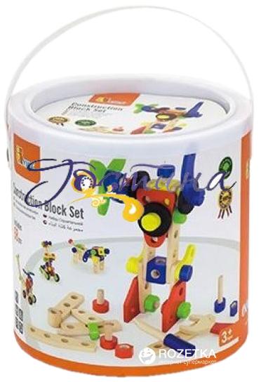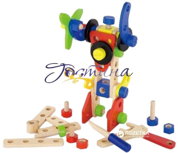Конструктор Viga Toys містить 48 дерев'яних деталей, з яких можна скласти різноманітні моделі, наприклад, вертоліт або перегонову машину відповідно до прикладів з буклету, або керуючись фантазією й задумом маленького винахідника.