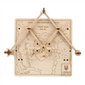 За допомогою системи на кшталт пантографа ви можете пересувати Байрактар над картою острова. На зворотній стороні моделі розміщено ніжки, щоб ви могли поставити свою механічну картину на видне місце і насолоджуватися нею разом із членами родини та друзями.