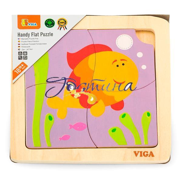 Дерев'яний міні-пазл Viga-Toys Рибка з 4 елементів розроблений для дітей від 18 місяців і цілком гідний стати першою іграшкою дитини, що розвиває. Головоломка барвиста, із простим малюнком у вигляді симпатичної рибки та великими деталями.