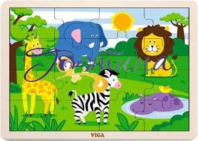 Дерев'яний пазл Viga Toys В Африці — класичний дерев'яний пазл з 16 елементів у дерев'яній рамці.