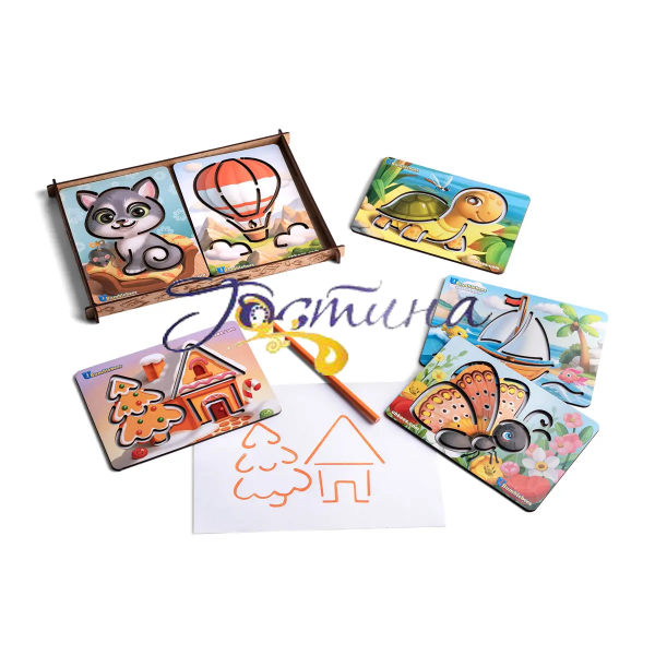 Дерев'янні пазли-вкладачі Трафарети (6 шт.) - Великі - головоломки для дітей ПСФ095