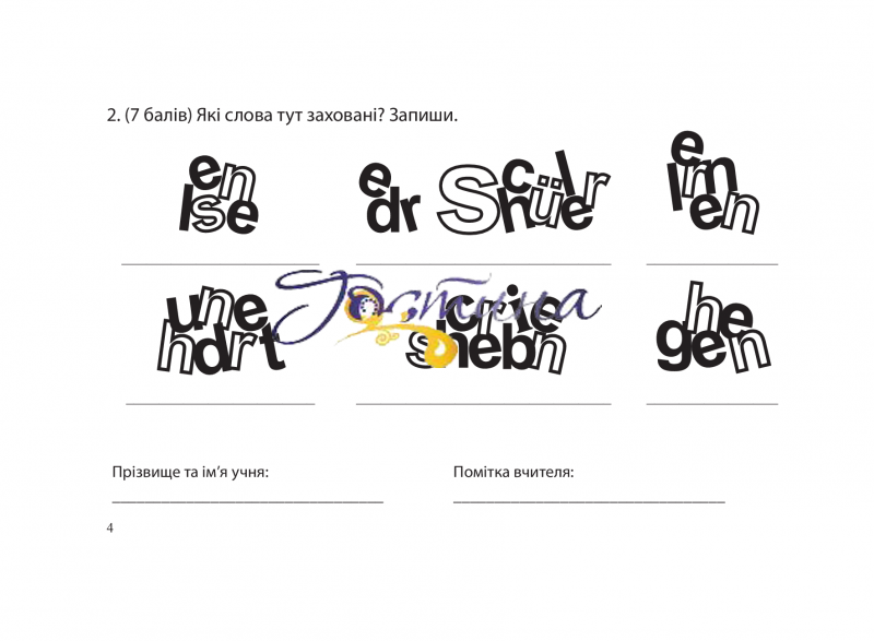 Пропонований посібник містить цікаві завдання для оперативної перевірки знань третьокласників з німецької мови.