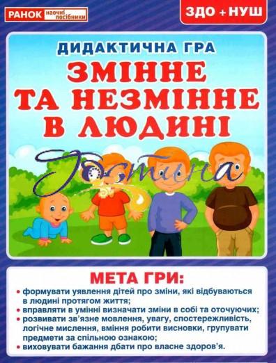 Дидактична гра познайомить дітей з життєвим циклом людини. Гру можна використовувати під час групових занять або індивідуально. У наборі 2 поля для гри (формат 30х21 см), 24 картки, методичні рекомендації. Завдяки целюлозному картону, з якого виготовлена ??гра, вона буде служити довгий час. Як грати: Матеріал має кілька варіантів гри. 1. Покладіть поля і картки перед дітьми. Запропонуйте викласти картки на поля, розподіливши їх на змінні і постійні якості людини. 2. Покладіть перед дітьми 8 карток з зображенням вікових змін людини. Запропонуйте викласти їх в хронологічному порядку від молодшого до старшого. Ціль гри: - Формулювати уявлення про зміни людини на протязі життя - Вміти визначати зміни в собі і оточуючих - Розвивати зв'язне мовлення, увагу, спостережливість, логічне мислення, пам'ять - Виховувати бажання піклуватися про здоров'я