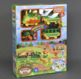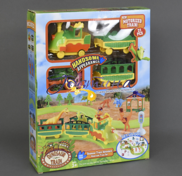 Оригінальний автотрек для найменших  XZ 519 являє собою кругову трасу, по якій курсуватиме забавний паровозик з вагончиками.В кожному вагоні малюк зможе помістити фігурки динозавриків з мультфільму «Поїзд Динозаврів» .Під час свого функціонування прожектор поїзда випромінює яскраве світло. Працює він від батарейок 2х1,5 V АА (не входить в комплект) .Усього в наборі 21 елемента. Крім деталей траси, локомотива, вагончиків і фігурок динозаврів, в коробці ви знайдете також декорації і елементи, які допоможуть створити справжню залізничну станцію.