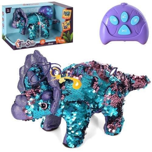 Іграшка Динозавр на дистанційному управлінні (ІЧ), 32см, музичні ефекти, повтор, ходить, паєтки, 2 кольори, на батарейках, в коробці 34,5*19,5*14,5см, T863