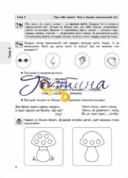 Зошит укладено за чинними програмами розвитку дитини дошкільного віку та призначений для використання в освітній роботі, що спрямована на ознайомлення дітей з довкіллям. Матеріал кожного заняття відповідає принципу інтеграції (до зайняти інтегровано матеріал з природознавства, із розвитку мовлення, підготовки руки до письма, логіки, суспільствознавства). Пропоновані завдання дібрано за трьома напрямами: учбовим (збагачення знань та уявлень про предметне середовище, життя людей та самого себе); розвивальним (формування та розвиток вмінь та навичок, навичок спостерігати, аналізувати, виділяти загальні ознаки предметів, об'єктів, систематизувати та групувати їх за різними критеріями тощо); виховним (виховання культури спілкування у соціумі). Дидактичні ігри, вірші, прислів'я, загадки, є яталочки, вміщені на сторінках зошита, зроблять навчання дітей цікавішим. У кінці зошита подано перелік тем із зазначенням задіяних освітніх ліній, який може бути використаний педагогами-практиками під час складання календарно-тематичного планування зайняти на рік.