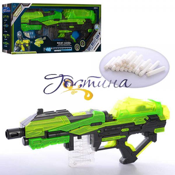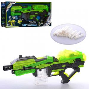 Дитячий автомат з м'якими патронами. Безпечний для дитячих ігор, так як стріляє м'якими кулями. Одночасно бластер заряджається 10 патронами. Всього ж в комплекті йде 20 патронів на присосках. Принцип дії: зводить курок і стріляємо. Дуже потужний механізм. Працює від акумулятора. Пристрій йде в комплекті із зарядним.