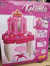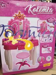 У комплекті: стільчик;фен;Чарівна паличка;флакон;помада 2 шт .;намиста;браслети 2 шт .;гребінець /функції: музика;світло;за допомогою чарівної палички відкриваються стулки дзеркалана дзеркалі проявляється картинка.Живлення: Фен - батарейки АА 2шт, не входять до комплекту.Трюмо - батарейки АА 3шт, не входять до комплекту.Чарівна паличка - батарейки (таб.), Входять в комплект.Розмір трюмо: 70,5-43,5 см.У коробці, розмір: 55-70,5-9 см.