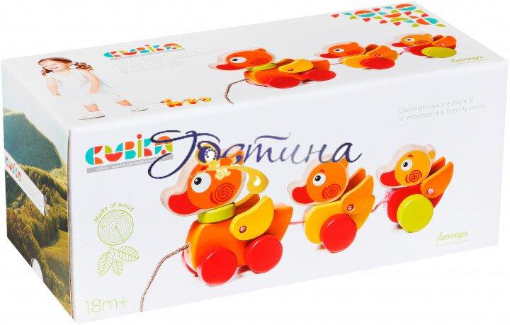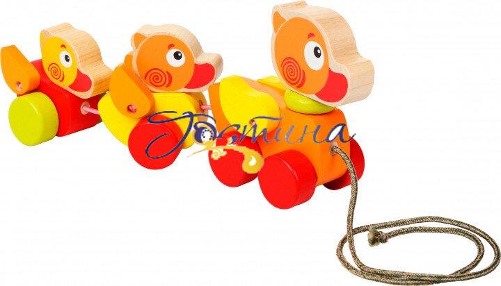 Мандрівні каченята — це високоякісна дерев'яна каталка на мотузці для малюків. Так як каталка їде ззаду, діти освоять простір, що знаходиться за їх спиною. Придумуючи різні ігрові сюжети, у дітей покращиться уява, фантазія і моторика.