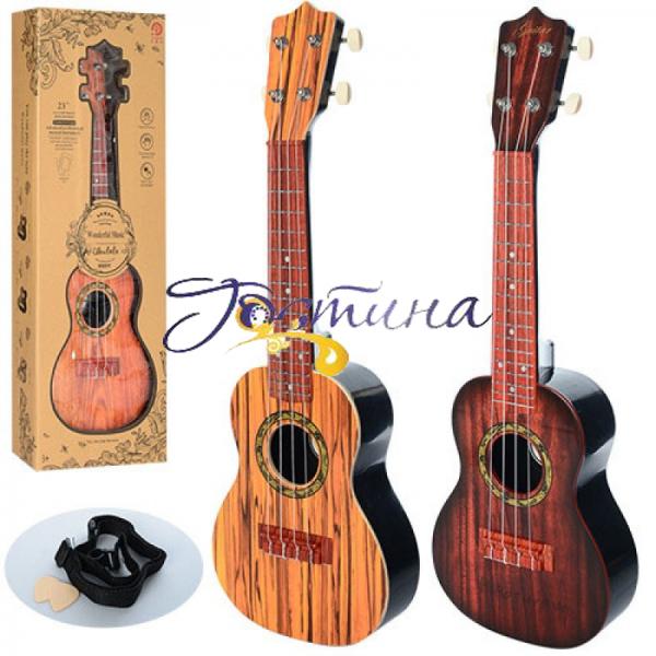 Гітара 898-13 в подарунковій упаковці 72х26х9,5см - модель розміром 60 см, яка стане вдалим вибором в якості подарунка для будь-якої дитини. Навіть якщо Ваш малюк не цікавився раніше музикою, така іграшка обов'язково приверне його увагу. Гра на музичних інструментах не тільки позитивно впливають на розвиток слуху, а й сприяють формуванню цілеспрямованості і творчих навичок. Дитяча гітара має 4 струни, ергономічний гриф і стильний, реалістичний дизайн, як у справжнього музичного інструменту. Іграшка розроблена з міцного пластику без застосування небезпечних барвників і компонентів, здатних викликати у дитини неприємні реакції. Тепер Ваш малюк зможе виступати перед родичами з сольними номерами, або організує з друзями власний колектив.