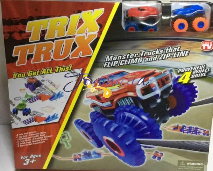 Trix Trux - нарешті всіма улюблені монстр-траки ожили і зійшли з екрану, перетворившись на дивовижний іграшковий гоночний канатний трек! На відміну від простих іграшкових машинок, монстр-траки Trix Trux їдуть заздалегідь змодельованою вами трасою, долаючи різні перешкоди.