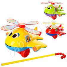 Каталка Вертоліт на палиці буде цікава діткам, які тільки навчилися ходити або ходять давно. Каталочка яскрава та приваблює малюка. Розмір 41см. Вертоліт зі звуком, при русі обертаються гвинти і висовується язик
