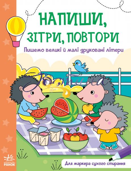 Характеристики РАНОК Дитяча література Пишемо великі і малі друковані літери. Напиши, зітри, повтори!
