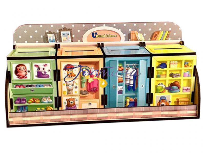 Дитяча розвивашка - Чарівний комодик "Шафи з одягом" (Дерев'яний сортер) ПСД061