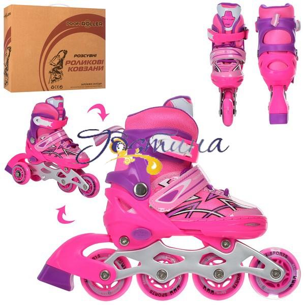 Ролики A 4142-XS-P 1шт розсувні, шнурівка+бакля, алюм.рама, колесаПУ64мм, 1свет, довжина устілки 16см, комбо, рожевий, в коробці. Матеріал: алюміній + PU.