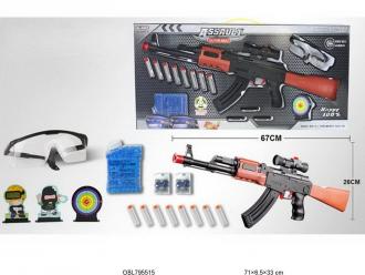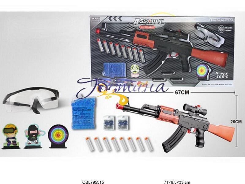 У наборі: гелеві кулі, водні кулі, 8 софт-патронів (кулі-присоски), окуляри, мішень.