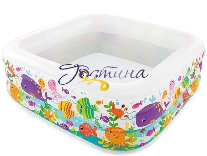 Стильний і модний басейн для дітей від 3-х років. Стінки басейну виконані з блакитного вінілу і мають прозорі вікна. Сонячне світло, проходячи через них, створює на воді відблиски, які додають святковий настрій. Для швидкого зливу води басейн оснащений зливним клапаном. Басейн має три незалежні надувні камери, забезпечені подвійними клапанами. Ця модель басейну підходить як для дітей, так і для дорослих.