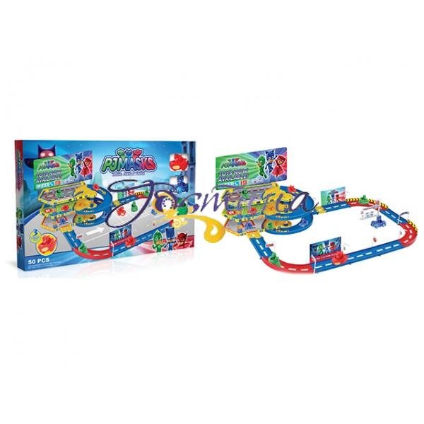 Дитячий паркінг з учасниками мультика "Герої В Масках". У невеликій комплект входить 17 деталей,