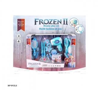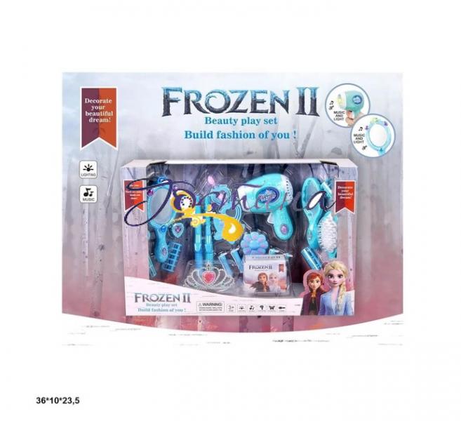 У комплекті: два зеркальці; гребінець; фен; бігуді; дві плойки для волосся; прикраса для волосся; сережки; 2 кільця; діадема. Фен та зеркало оснащені звуковими та світловими ефектами - відтворює безліч мелодій, також під час роботи включається підсвічування. Працює на батарейках