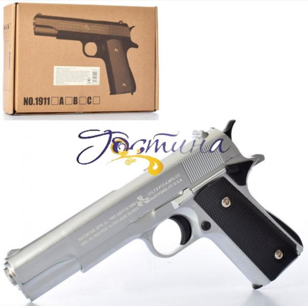 Дитячий пістолет обов'язково сподобається вашій дитині (скоріше всього ще і його татові), адже це практично точна копія справжнього пістолета. Для кожного пострілу необхідно пересмикнути затвор. Пістолет поставляється в красивій заводській упаковці.