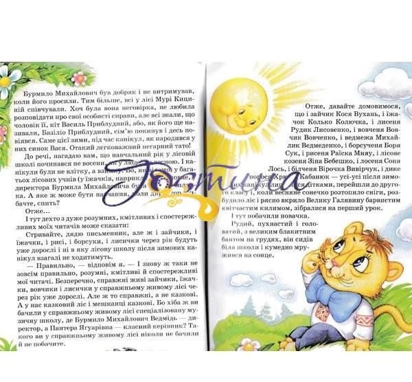 Легка, життєрадісна, сповнена доброго гумору книга розповідає про веселі, дотепні пригоди зайчика, їжачка та їхніх однокласників, учнів спеціалізованої музичної лісової школи з ведмежою мовою викладання.