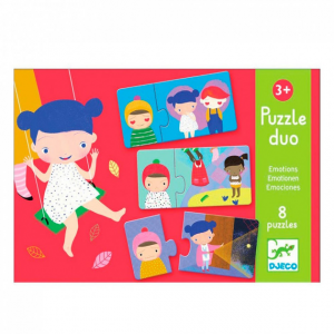 Саме це завдання переслідує гра «Знайди емоції» від французького бренду Djeco. У наборі є 16 фрагментів картинок, у тому числі потрібно скласти 8 пазлів на тему емоцій. Підберіть із малюком правильну емоцію до половинки, на якій зображено ситуацію. Наприклад, здивування буде відповідати квадратику, де малюк зі здивуванням спостерігає за прекрасним метеликом, що злітає з квіточки.