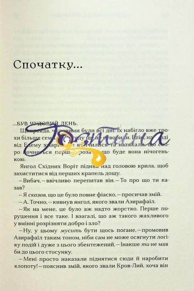 Як каже нам книга "Вичерпних та ґрунтовних пророцтв Агнеси Оглашенної" (а цій книзі треба вірити, бо це єдина у світі книга пророцтв, що справджуються), кінець світу прийде в суботу. Якщо точніше, то оцієї суботи, що на наступному тижні. Якраз перед вечерею. Добро та Зло збирають армії, жаби проливаються дощем, Атлантида піднімається з морських глибин… Усе було б згідно із задумом Божим, якби не двійко незвичайних союзників: вибагливий янгол-букініст та стильний демон-авантюрист. Обидва живуть серед смертних від Самого Початку, і таке життя їм вельми до вподоби — тож вони не горять бажанням попрощатися із таким звичним світом. А ще, здається, хтось загубив Антихриста...