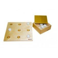 В процесі гри дитина повинна акуратно помістити все кульки в поглиблення на дошці. Робота з матеріалом розвиває координацію дрібних рухів, дрібну моторику, чутливість пальчиків малюка, готує руку до письма.