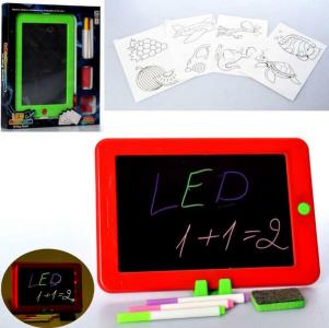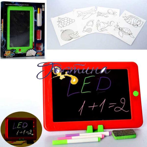 Дошка для малювання 023-1, LED, світло, фломастери, губка, 2 кольори, кор, 28-26-4см