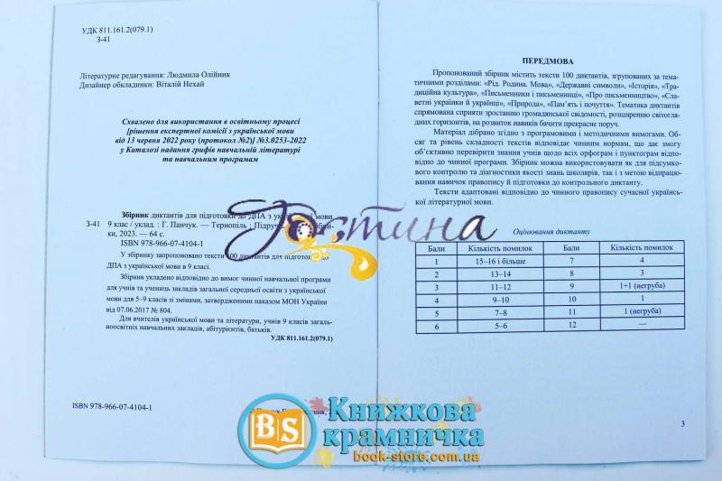 У збірнику запропоновано тексти 100 диктантів для підготовки до ДПА з української мови в 9 класі.