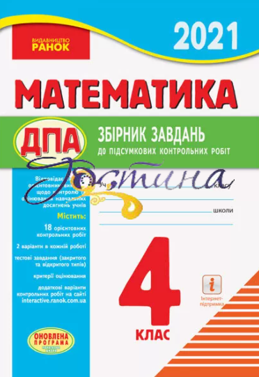 Пропоновані завдання охоплюють усі теми, що вивчає четвертокласник протягом навчального року, і спрямовані на перевірку знань з математики та обчислювальних умінь.
