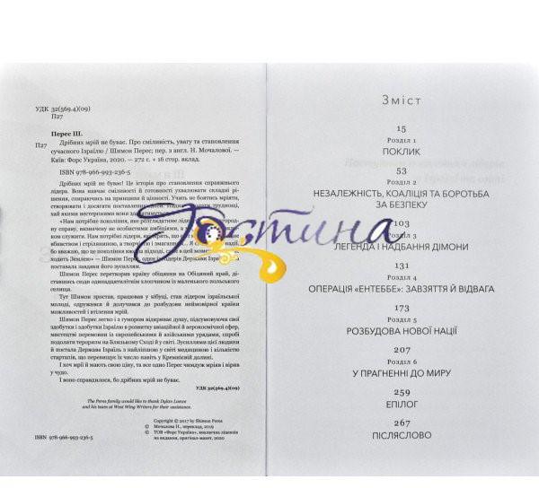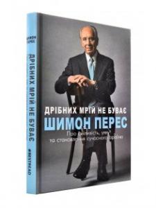 Дрібних мрій не буває! Це історія про становлення справжнього лідера. Вона навчає сміливості й готовності ухвалювати складні рішення, спираючись на принципи й цінності. Учить не боятись мріяти, створювати і досягати поставлених цілей. Надихає долати труднощі, хай якими нестерпними вони здаватимуться. «Нам потрібне покоління, яке розглядатиме лідерство як благородну справу, визначену не особистими амбіціями, а мораллю — і закликом служити. Нам потрібні лідери, які вірять, що світ можна змінити не вбивством і стріляниною, а творчістю і змаганням... Я сповнений надії, бо вважаю, що це покоління вже на підході, саме в цей момент воно вже ходить Землею» — Шимон Перес, один із лідерів Держави Ізраїль, яка поставала завдяки його зусиллям. Шимон Перес перетворив країну обіцянки на Обіцяний край, діставшись сюди одинадцятилітнім хлопчиком із маленького польського селища. Тут Шимон зростав, працював у кібуці, став лідером ізраїльської молоді, одружився й долучився до розбудови неймовірної країни можливостей і втілення мрій. Шимон Перес легко і з гумором відкриває душу, підсумовуючи свої здобутки і здобутки Ізраїлю в розвитку авіаційної й аерокосмічної сфер, мистецтві перемовин із європейськими й азійськими урядами, спробі подолати тероризм на Близькому Сході й у світі.