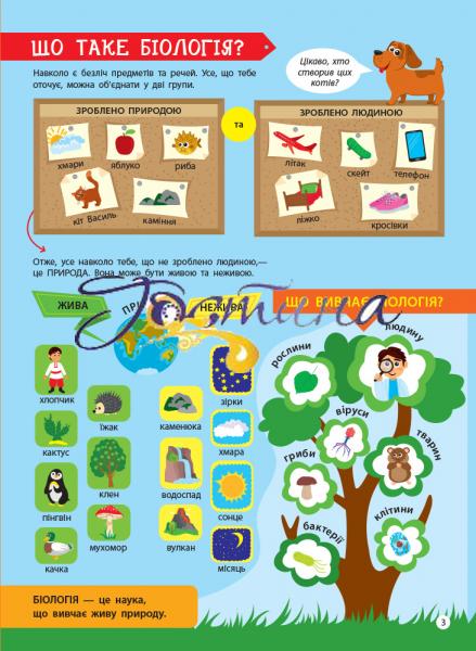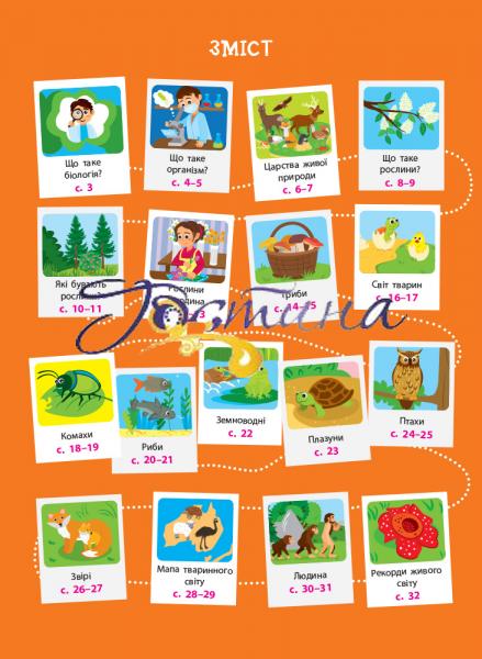 Що таке організми і де вони живуть? Які бувають Царства у природі? Хто населяє нашу планету? Що всередині людини? На ці та безліч інших запитань дасть відповідь енциклопедія «Біологія». У ній на вас чекають: яскраві сучасні ілюстрації; прості та зрозумілі пояснення; мінімум тексту та максимум схем у картинках.