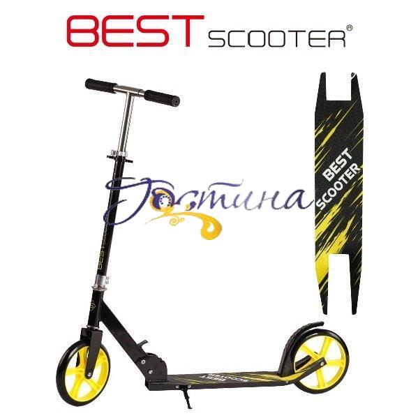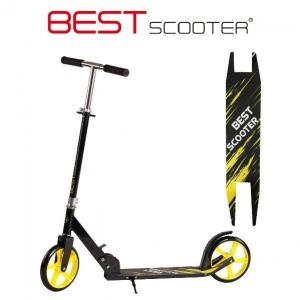 Двоколісний самокат від "Best Scooter" - призначений для активного відпочинку дитини і стане чудовим міським транспортним засобом. Просте металеве обладнання і поліуретанове колесо легко і безшумно ковзають по дорозі, а сталева конструкція може витримувати великі навантаження. Конструкція самоката компактна, складна і зручна для перенесення, форма руля — пряма.