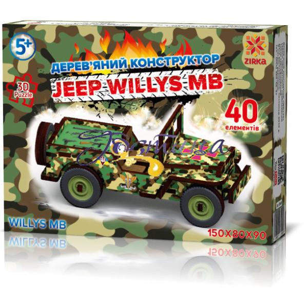 Дерев'яний конструктор Willys - це 3Д пазли з ДВП з кольровим принтом у вигляді моделі джипа Вілліс. Збирається за інструкцією.