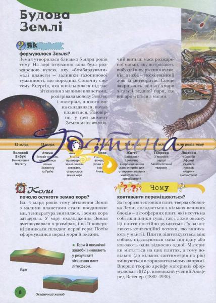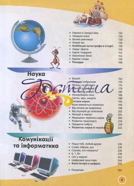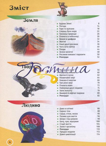 Сучасна енциклопедія розповідає про геологічну будову Землі, про рослинний і тваринний світ планети, про винаходи й відкриття в науці та техніці, про останні досягнення в галузі комунікацій та інформаційних технологій. Різноманітні рубрики, таблиці, яскраві ілюстрації доповнюють докладні тексти. Для школярів, яким цікаво знати «Як?», «Чому?», «Коли?», «Яка будова?», «Як працює?».